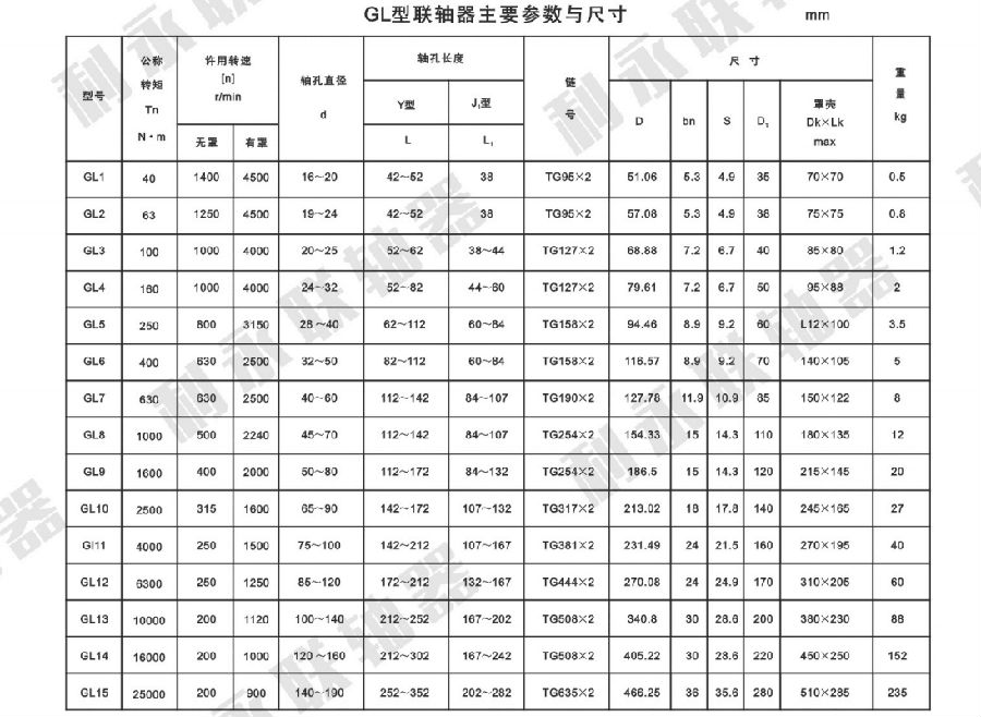 GL型滾子鏈聯軸器欄目說明: