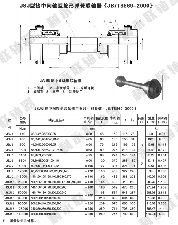 -蛇形彈簧聯(lián)軸器,是一種結(jié)構(gòu) 的金屬彈性聯(lián)軸器,它靠蛇形彈簧片來傳遞扭矩,蛇形彈簧聯(lián)軸器是當(dāng)今國際機(jī)械領(lǐng) 的軸聯(lián)接傳動(dòng)部件,也是一種非常通用的軸聯(lián)接傳動(dòng)部件蛇形彈簧聯(lián)軸器共有九類型式,分別是JS罩殼徑向安裝型(基本型)蛇形彈簧聯(lián)軸器、J 罩殼軸向安裝型蛇形彈簧聯(lián)軸器、JSS雙法蘭聯(lián)接型蛇形彈簧聯(lián)軸器、JSD單法蘭聯(lián)接型蛇形彈簧聯(lián)軸器、SJS接中間軸型蛇形彈簧聯(lián)軸器、JSG高速型蛇形彈簧聯(lián)軸器、JSZ帶制動(dòng)輪型蛇形彈簧聯(lián)軸器、JSP帶制動(dòng)盤型蛇形彈簧聯(lián)軸器、JSA安全型蛇形彈簧聯(lián)軸器等。